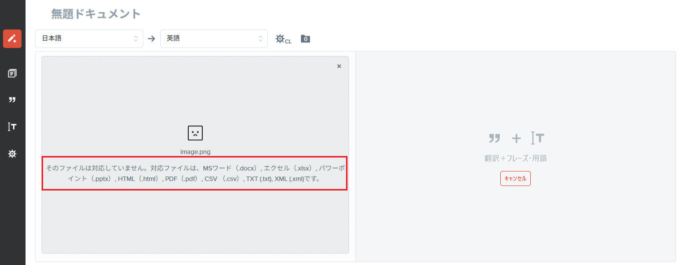 対策:ヤラク翻訳で対応しているファイル形式(拡張子)に変更する