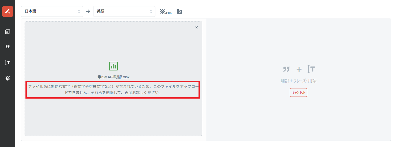 ファイルをアップロードしても「翻訳スタート」ボタンが表示されません