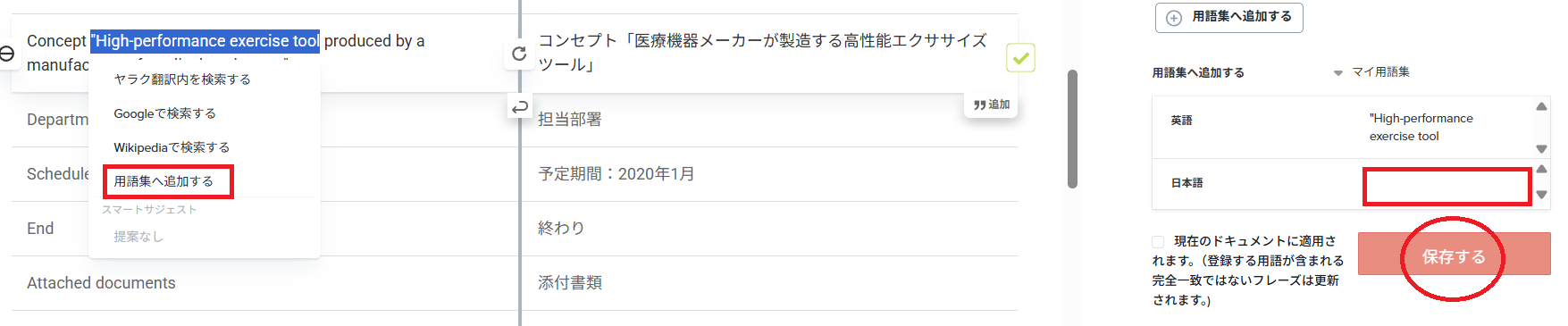各翻訳文を編集して「追加」ボタンを押すか、チェックを入れたカテゴリに保存される。