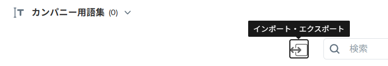 ・カンパニー用語集ページの「インポート・エクスポート」をクリックして、カテゴリを選んでファイル(CSVまたはTBX形式)をインポート。