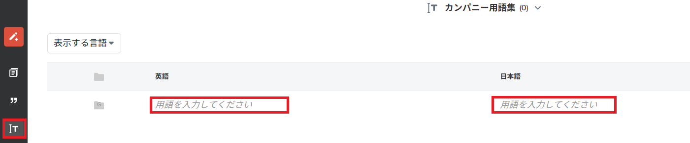 ・カンパニー用語集ページから直接登録(左一列に並ぶフォルダアイコンで保存したいカテゴリを選んでから、用語登録)。